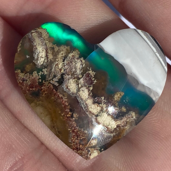 Unique Moss Agate Aurora Heart Doublet.