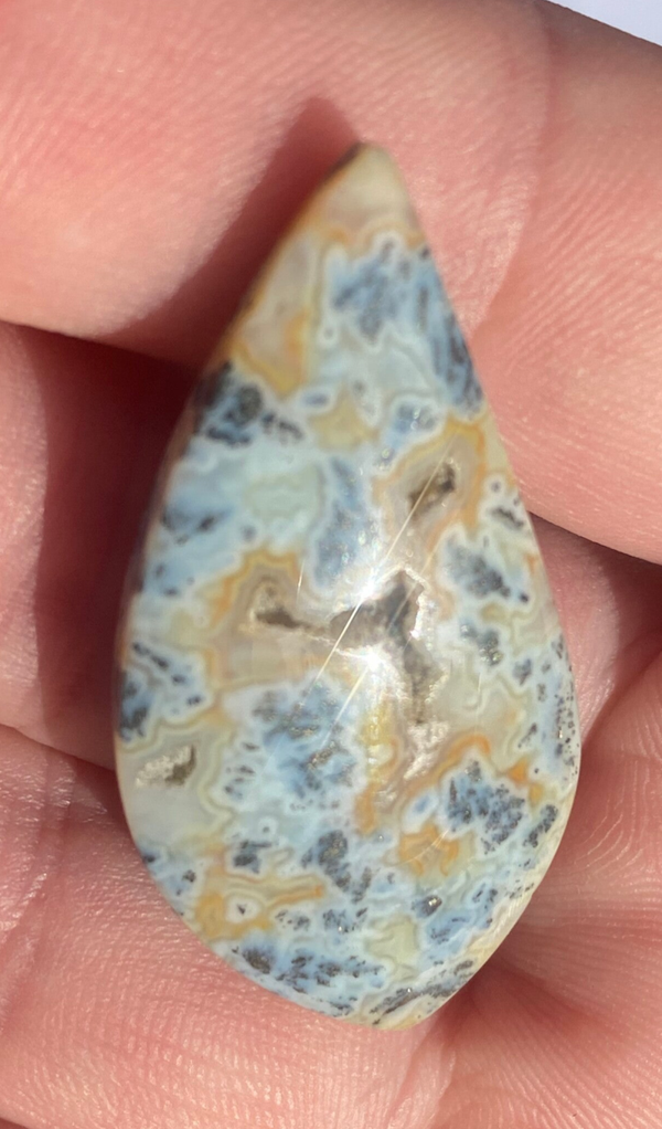 This White Marscarite features a beautiful Druzy.Natural white marcasite is rare and valued for its subtle sheen and unique crystal patterns.Expertly crafted by a professional lapidary artist and their skilled team, every stone is cut and finished to the highest standards. Each piece is personally hand-selected, ensuring both quality and uniqueness.
