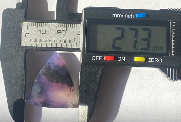 Moss agate is a type of chalcedony that features intricate, moss-like patterns within its translucent body. The rare purple variant is particularly sought after due to its stunning colors and patterns, which are caused by mineral inclusions. Each piece is unique, showcasing different swirls and formations, making it a desirable choice for jewelry making.Expertly crafted by a professional lapidary artist and their skilled team, every stone is cut and finished to the highest standards. Each piece is personally hand-selected, ensuring both quality and uniqueness.