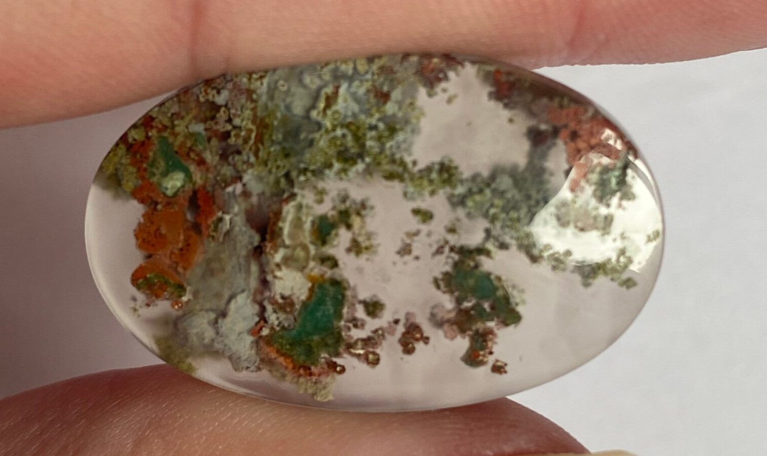 Bring a touch of nature’s tranquility to your jewelry designs with this stunning Moss Agate cabochon. Featuring intricate, moss-like inclusions suspended within a semi-translucent to milky matrix, each stone is a unique miniature landscape, no two are exactly alike. Its earthy greens and subtle whites evoke the calm of a forest floor, making it a perfect centerpiece for wire-wrapped pendants, rings, or artisan creations.Expertly crafted by a professional lapidary artist and their skilled team, every stone is cut and finished to the highest standards. Each piece is personally hand-selected, ensuring both quality and uniqueness.