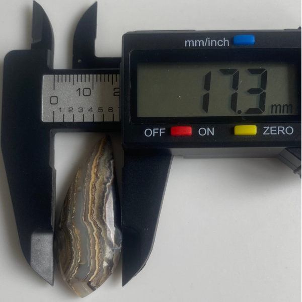 This pair of Black Lace Agate cabochons features stunning natural banding in smoky greys, black, and cream tones. These darker lace agates have a calming, grounded energy with dramatic visual movement.
