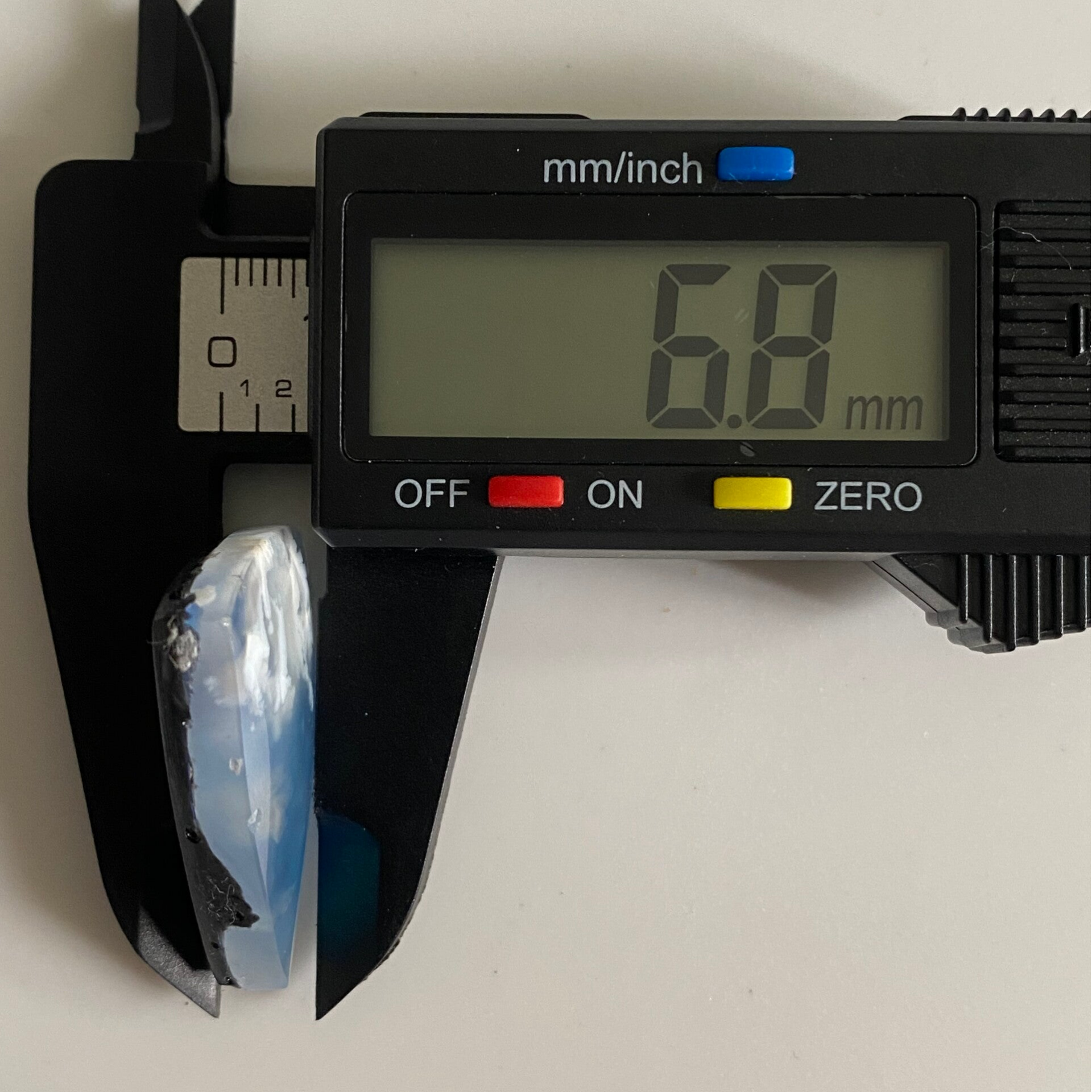 Plume Agate is a natural stone featuring feather-like inclusions that resemble smoke, clouds, or drifting feathers. Backed with Aurora effect, each piece shimmers with a striking iridescence, evoking the beauty of a luminous sky. Expertly crafted by a professional lapidary artist and their skilled team, every stone is cut and finished to the highest standards. Each piece is personally hand-selected, ensuring both quality and uniqueness.