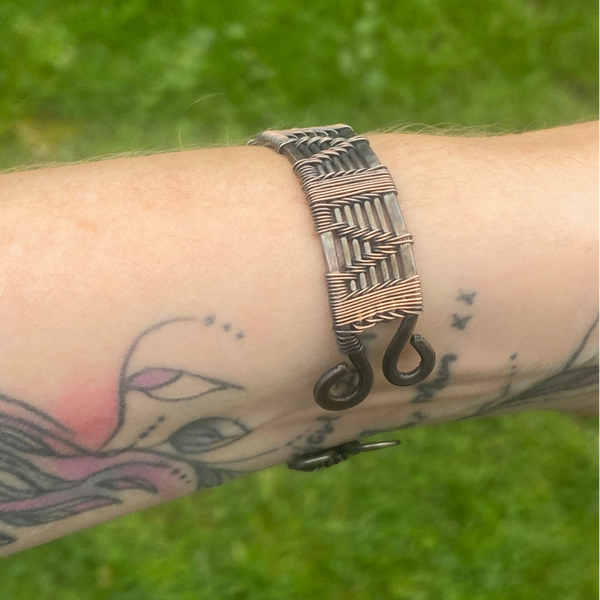 Copper Woven Cuff Bracelet – Hammered Two Tone Design